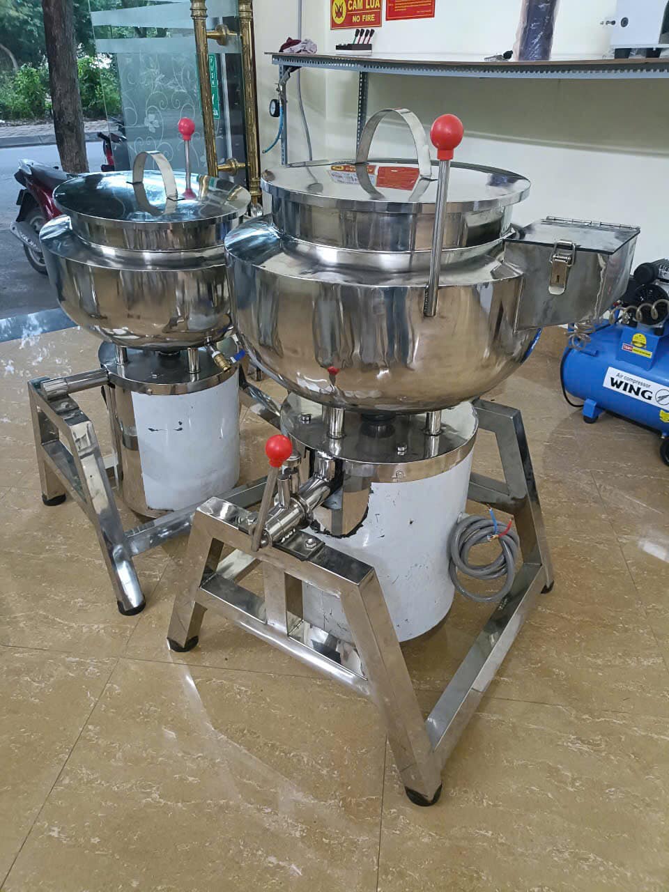 – Thiết kế tay cầm và chốt, bạn có thể nghiêng và lật máy tiện lợi. Trong quy trình làm xay thịt giò, việc nghiêng và lật máy nhiều lần giúp thịt trong cối được cuộn đảo đều nên thịt xay nhanh nhuyễn mịn không bị chết giò và có thể cố định đổ mọc ra và cho vào các khuôn làm giò inox 1kg để tạo ra những miếng giò đều. Tương tự, việc vệ sinh cối cũng nhanh chóng và sạch.